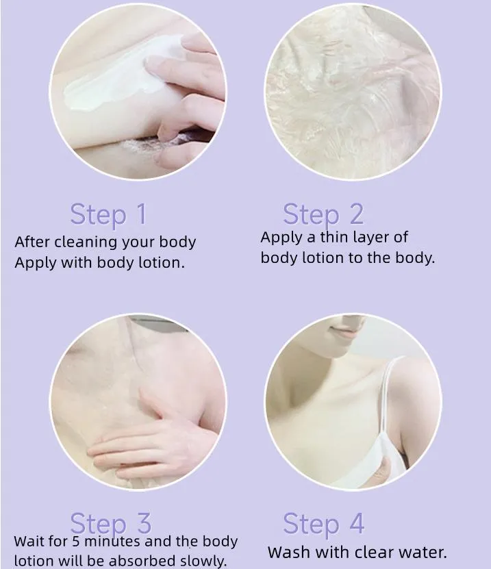 1. It contains a variety of extracted essence, which are non irritating, anti allergic, and can avoid any side effects on delicate skin. It is safe to use for whitening the whole body.